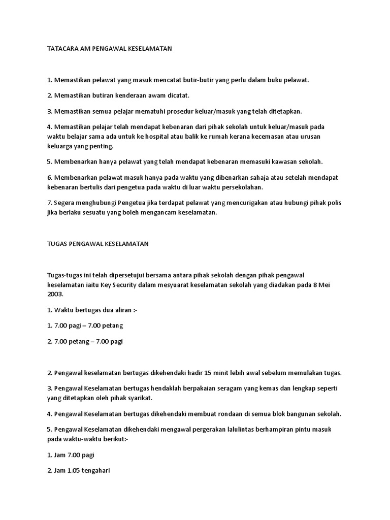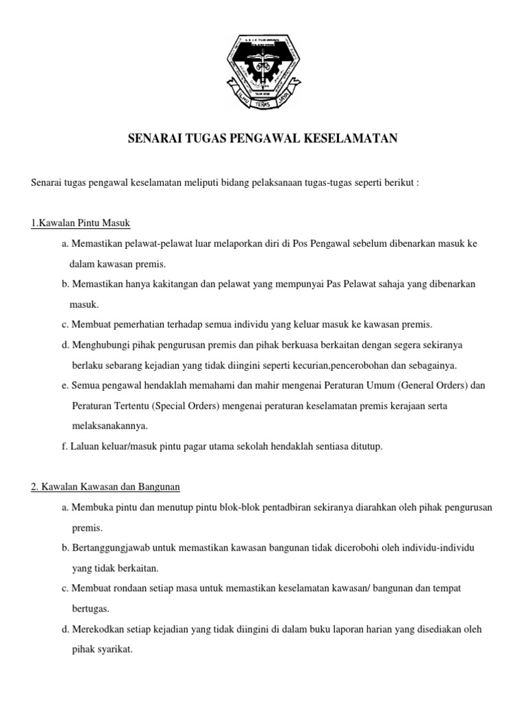 Senarai Tugas Pengawal Keselamatan Pdf